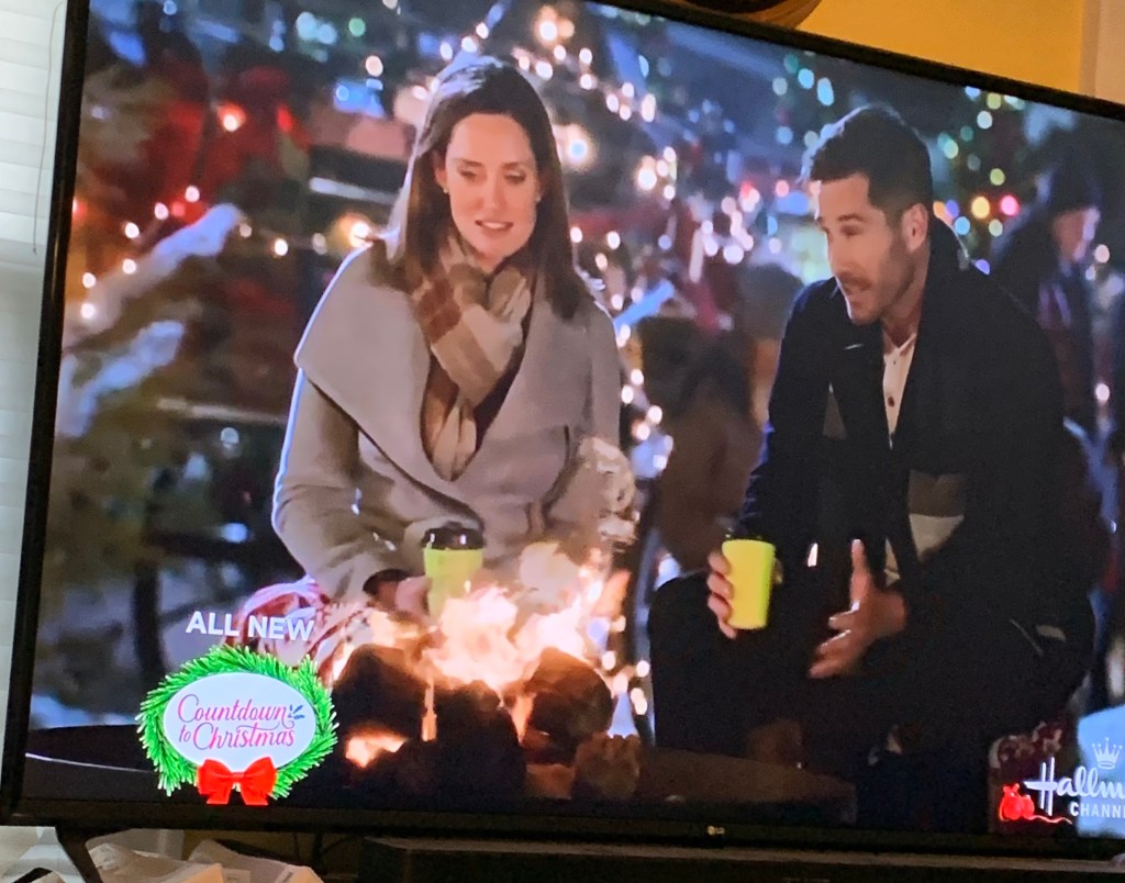 Montage of violins playing Adeste Fidelis, but the trio says they need a cellist, and Margot is like, here’s Jackson, and duh, I’ve already said that this would happen. BTW, the stage at this rehearsal space has 6 trees on it. I feel like husband should be drinking every time we see a tree, but he’s in a different room at the moment. Jackson feels invigorated by playing for 15 seconds, and Margot invites him to go see the tree lighting, and then leaves from an opposite door from when she came in, and I don’t know why. Where’s her car? Why leave through backstage? That makes no sense.