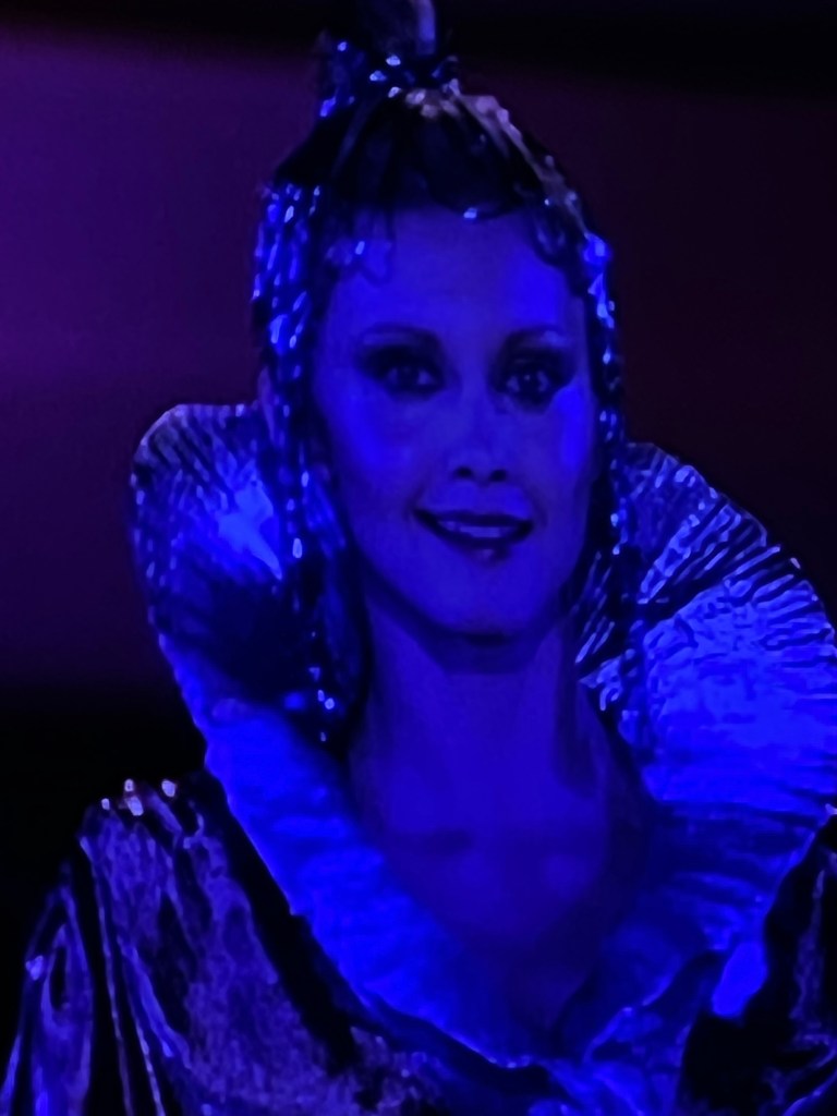 Oh my goodness – the two worlds are colliding! It is so freaking weird. and what is going on with the baby spotlights on top of the bandstand? They all have such halos that I think I have cataracts. But this imagination fever dream has convinced Danny McGuire that this crazy idea just might work! He’s back in show business! What should they call it? Well, Keira has a great idea, and quotes Coleridge and they’re gonna call it Xanadu. Danny thinks Keira looks really familiar, but she’s not gonna say why.